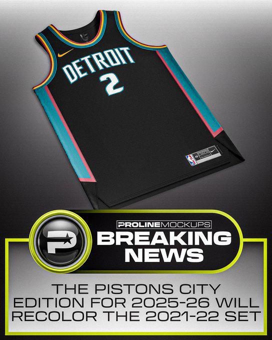 底特律活塞隊(duì)2025-26城市版將是2021-22賽季套裝的重新著色